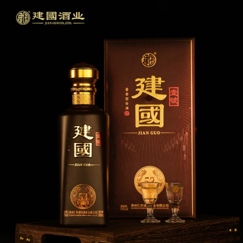 建国壹号珍品级天圆地方酱香白酒商务宴请奋斗精神 53%vol 500mL 1瓶