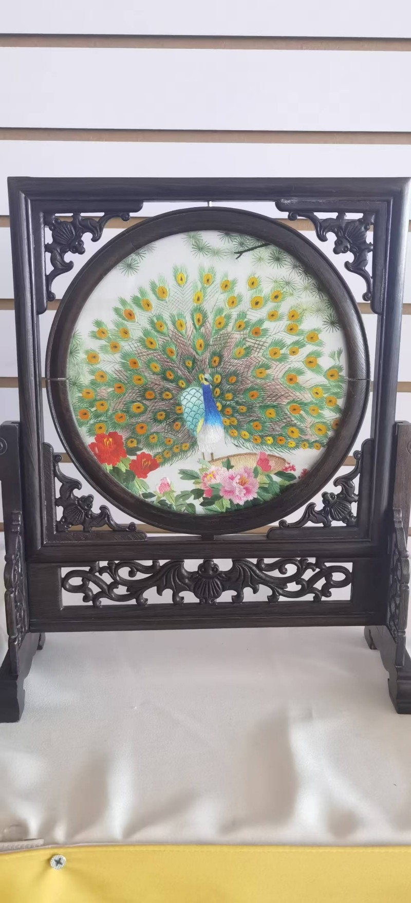 国家级非遗宁古塔满绣“孔雀开屏”主题立式摆件