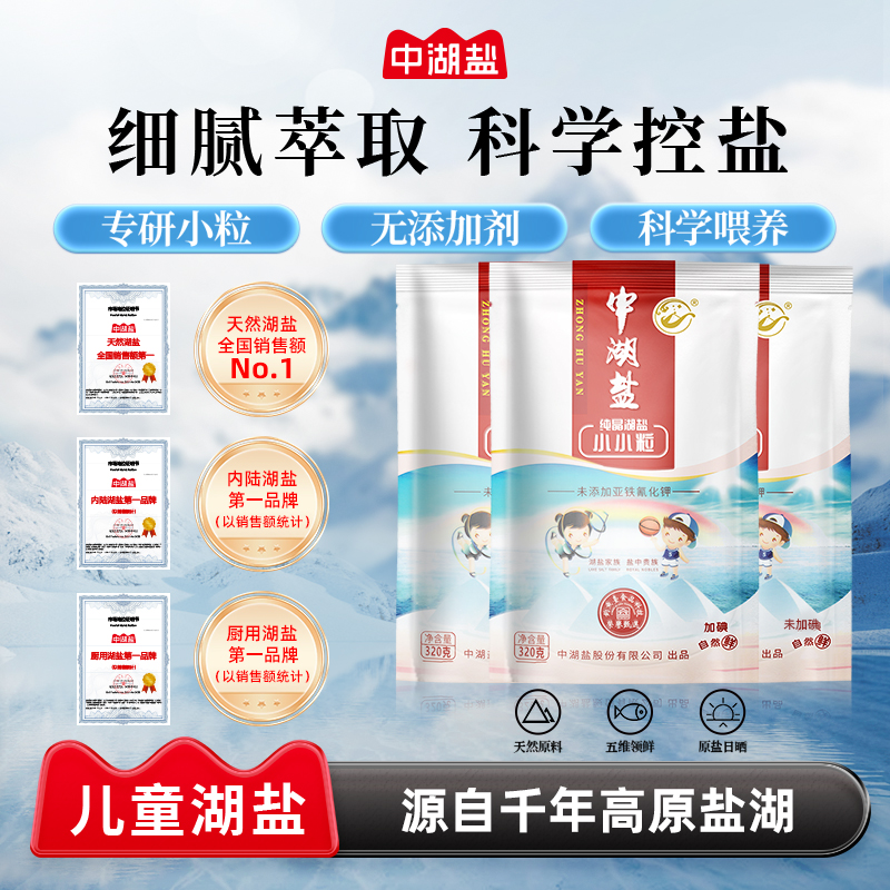 [热销]中湖盐儿童辅食盐天然湖盐宝宝盐无抗结剂320g*3袋