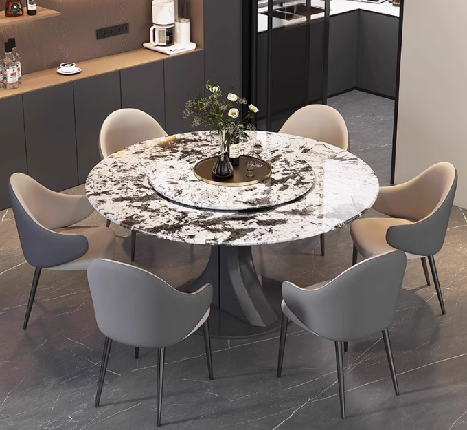 特点:巴西奢石独版纹理,晶闪温润,耐磨易洁,轻奢百搭显空间质感,一个餐桌立马提升档次