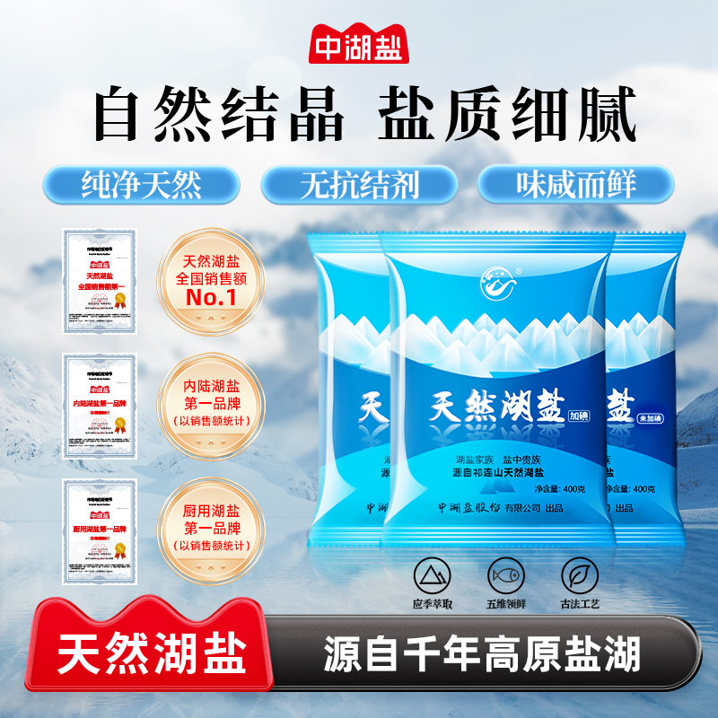 [热销]中湖盐天然湖盐食用盐日晒纯净家用食用盐无抗结剂盐400g