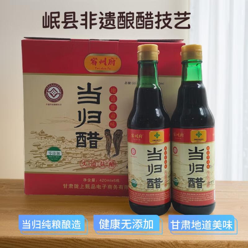 岷县当归醋头道麸醋零添加非遗传统酿醋技艺地道甘肃味特色当归醋当归醋一箱420ml*6瓶