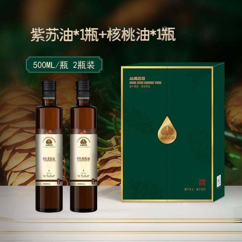 松榛庄园礼盒紫苏油*1瓶+核桃油*1瓶 500ml/瓶